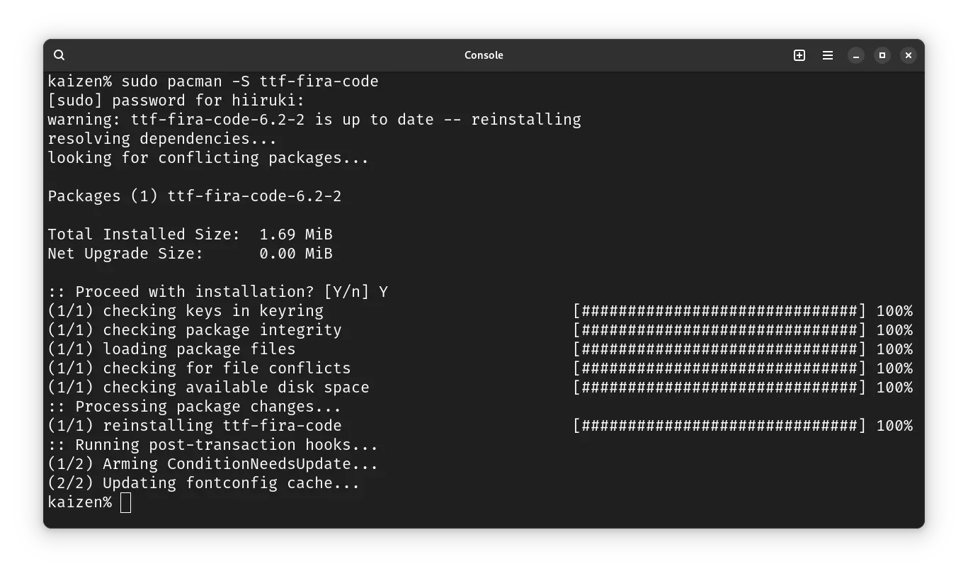 $ sudo pacman -S ttf-fira-code
