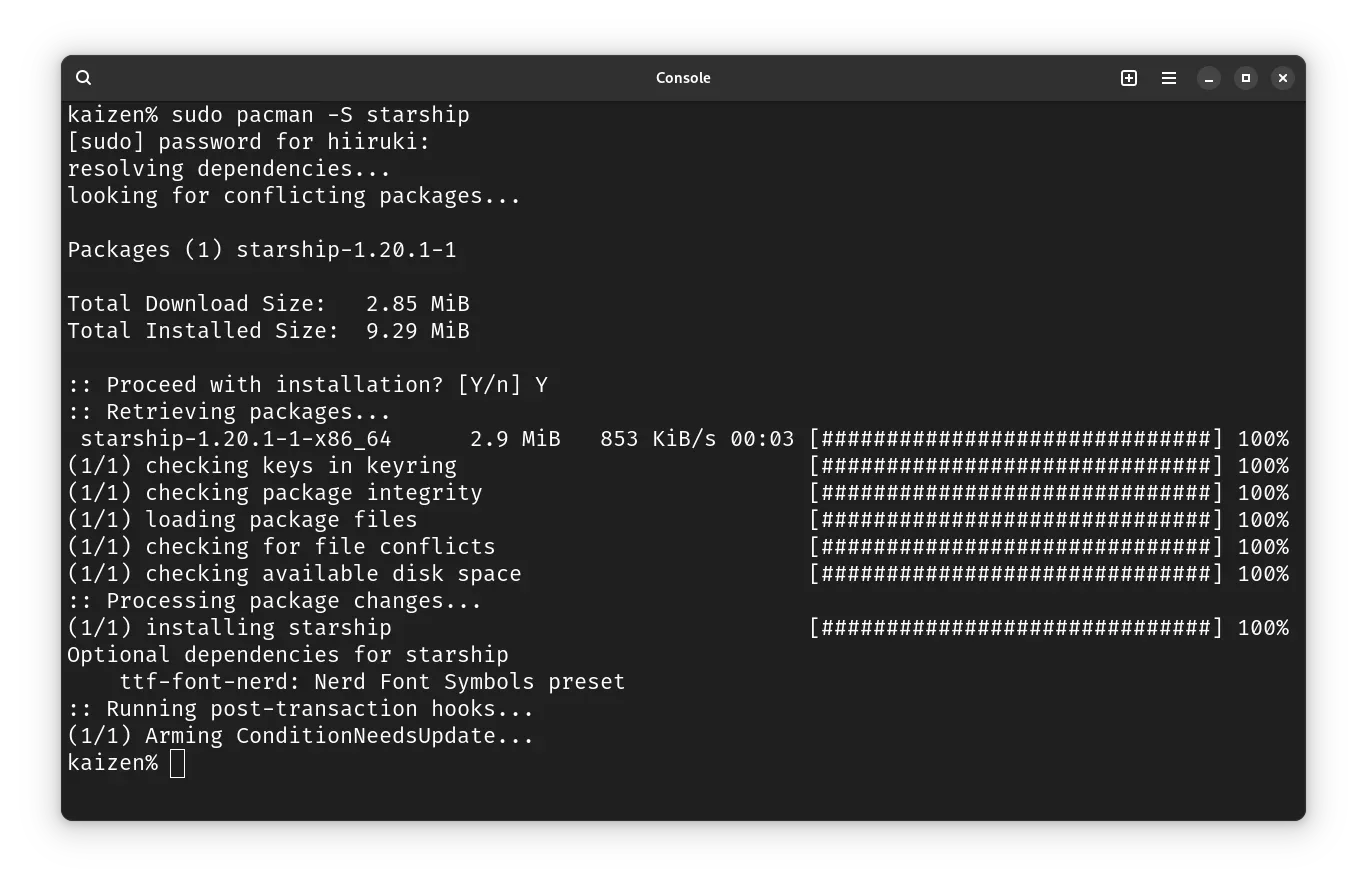 $ sudo pacman -S starship